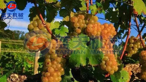 第一步:果實采收:原料選擇干制的葡萄鮮果,宜選擇固形物含量高,風味色澤好,酶褐變不嚴重,成熟度適宜,果粒皮薄,肉質軟,含糖量在20%以上的無核品種,制干的無核葡萄必須充分成熟,其標志是穗梗發白,用手指擠果粒,果汁即徐徐流出,并有較強的粘著力,品嘗時各漿果甜味一致。一般在8月中旬到9月中旬采收。