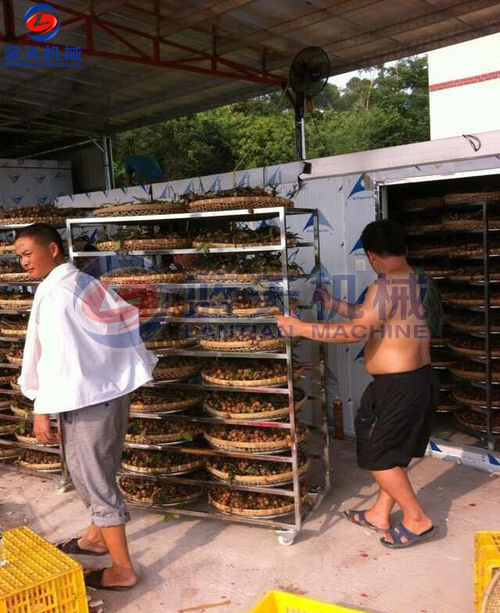 烘干過程有整果烘干和去殼烘干的不同產品加工要求,烘干兩種類型的產品,溫度控制不一樣,帶果皮的烘干溫度可以調高一些,達到60即可,純果肉的在50度即可,烘干后段都需要把溫度降低到45度進行烘制,烘干過程中無需翻動,可以無人值守,帶果皮的一般需要30小時,純果肉的烘干一般18小時即可完成。