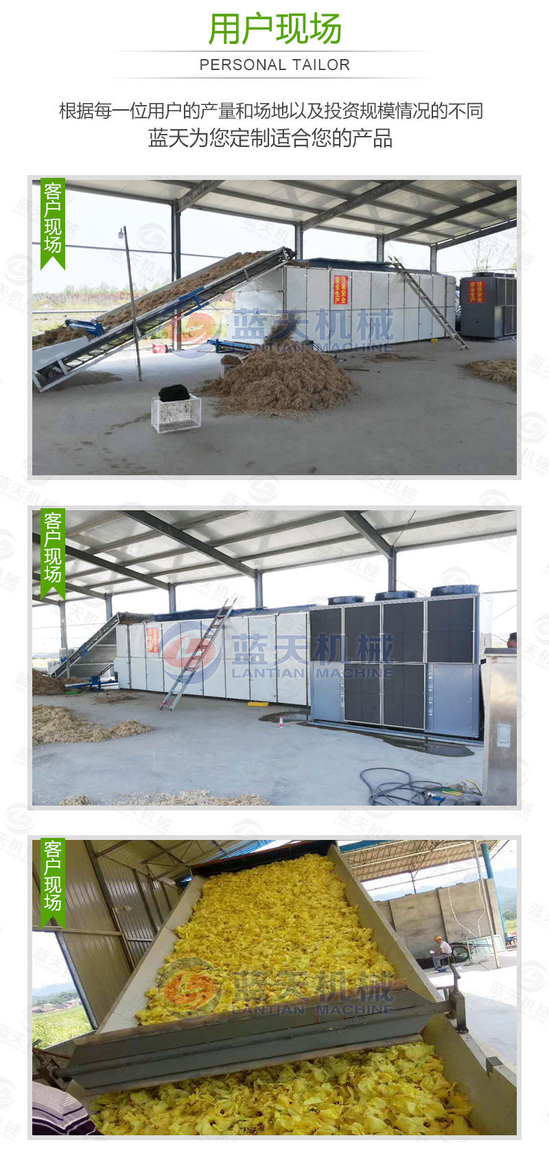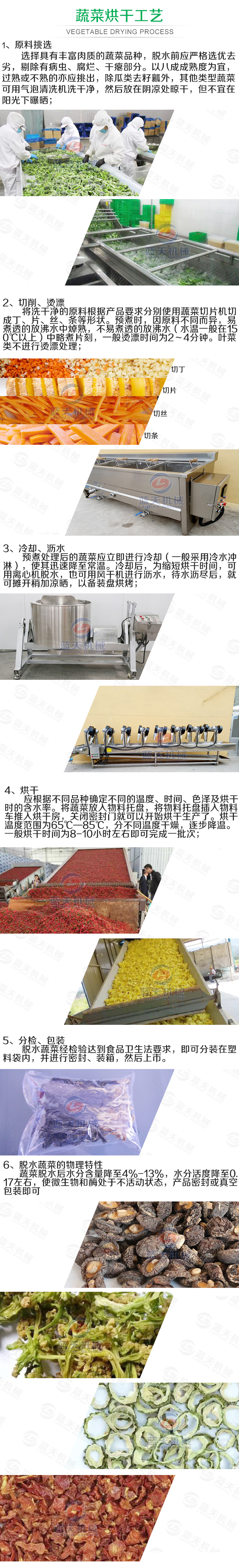 二、要烘干的蔬菜通過提升機將物料提升到輸送帶,輸送帶通過一個或幾個加熱單元組成的通道,每個加熱單元均配有空氣加熱和循環系統,每一個通道有一個或幾個排濕系統,在輸送帶通過時,熱空氣從上往下或從下往上通過輸送帶上的蔬菜,從而使蔬菜能均勻干燥烘干。