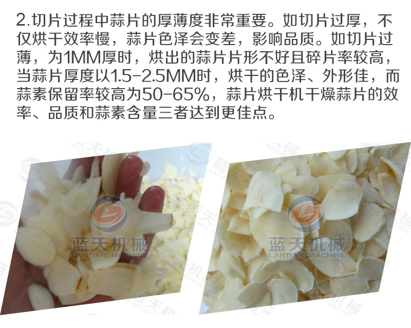 8、切片時可以選用切片機,切出大蒜的厚薄均勻平整,這樣烘干后的大蒜片成品質量均勻,不會參差不齊。