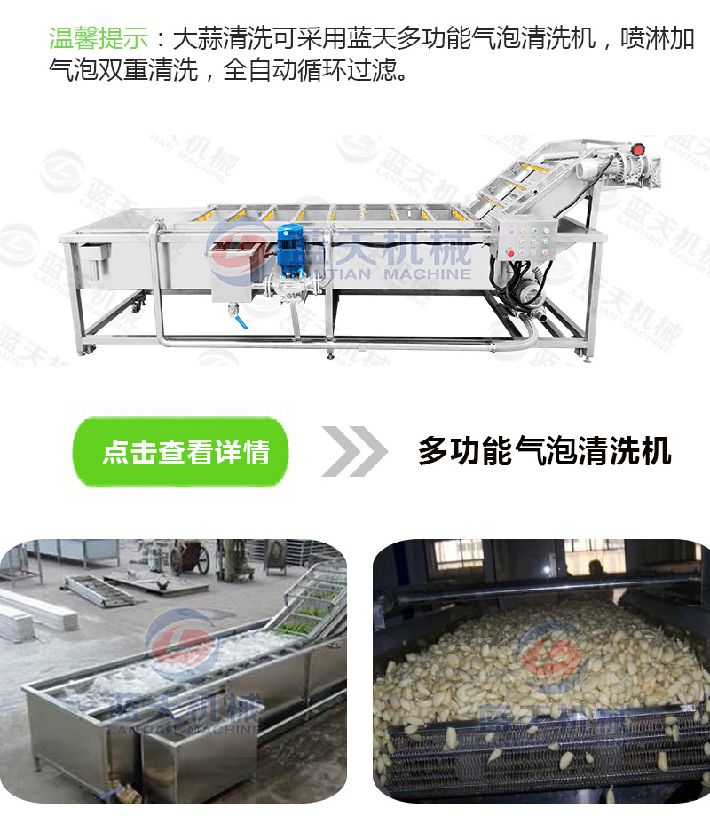 7、經過脫皮的大蒜少不了會沾些灰塵或臟東西,可用氣泡清洗機將去皮后的大蒜們好好洗洗干凈,得保證要脫水的大蒜們干凈衛生。
