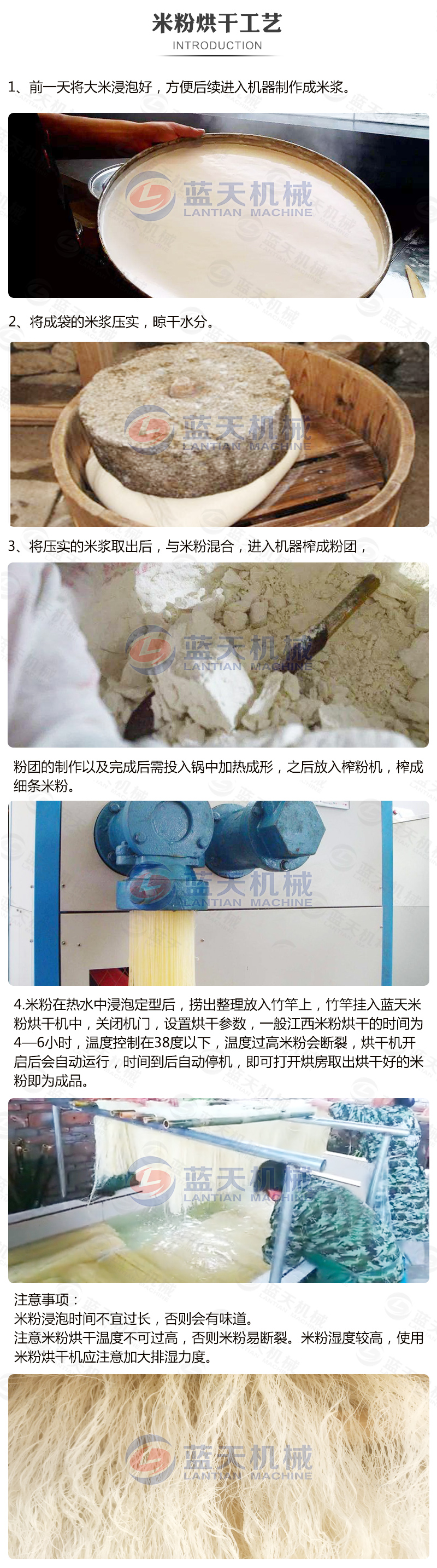 1、低溫,增大排濕:溫度35℃,烘干時間大約2-3小時。前期米粉烘干設(shè)備的烘干溫度不宜太高,否則米粉容易斷裂。米粉濕度較高,應(yīng)注意增大排濕力度。