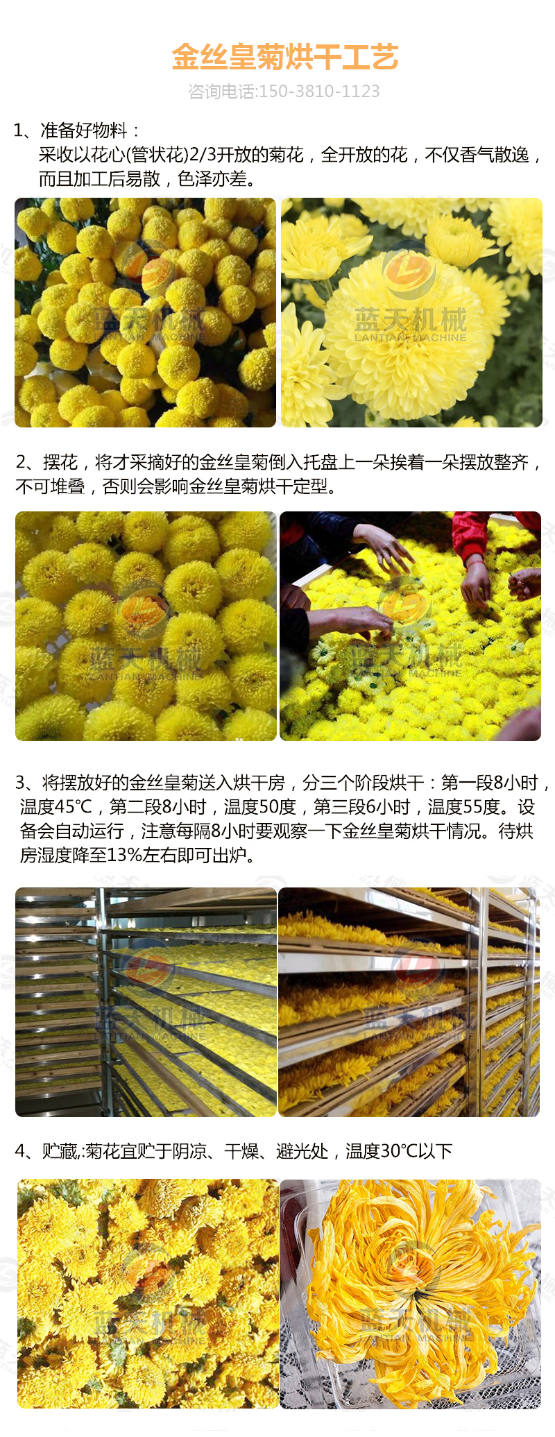 三、烘干品質好,熱效率高。菊花烘干機設備采用電加熱,烘干溫度穩定,以及特有控制系統,能準確控制烘干機的溫度,因此,烘干菊花品質好。