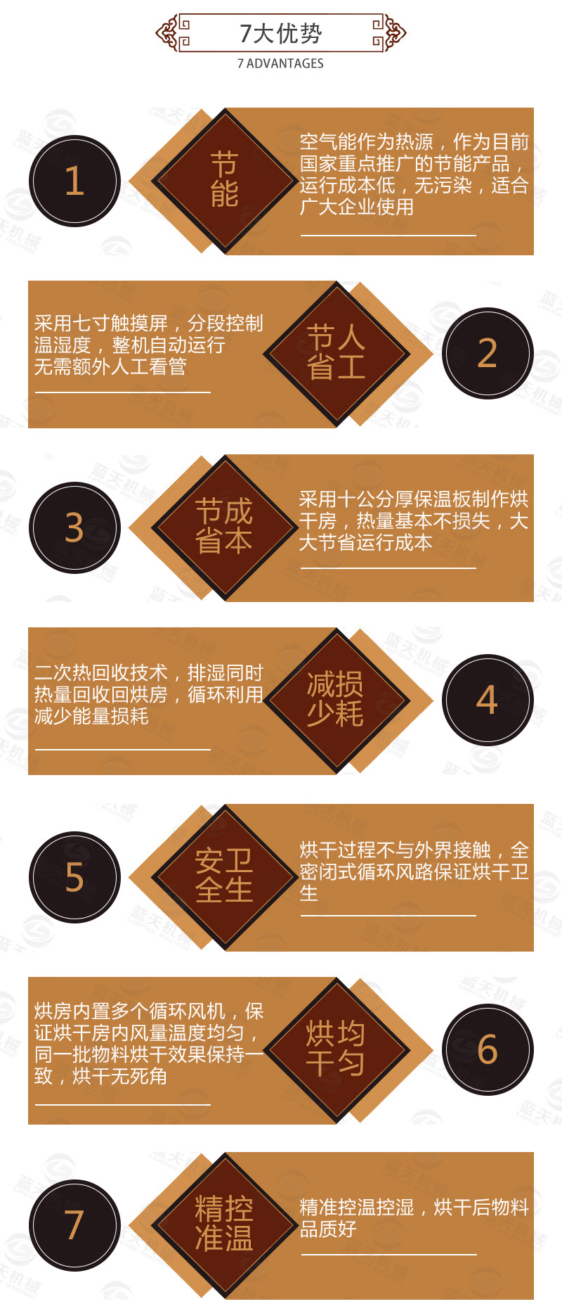 使用藥材烘干機能夠有效的保障被烘干干燥藥材的品質,顏色、外觀形態和有效成分均能得到妥善的保護;藥材烘干房烘干過程中不會對藥材及環境造成污染、沒有廢水、廢氣、廢渣排出,環保節能;藥材烘干房采用全自動溫度控制,操作簡單,可全天候24小時工作,不用專職人員看守;能耗低,保障物料烘干品質的同時,藥材烘干機設備價格大幅度減少烘干的成本,經濟性好。