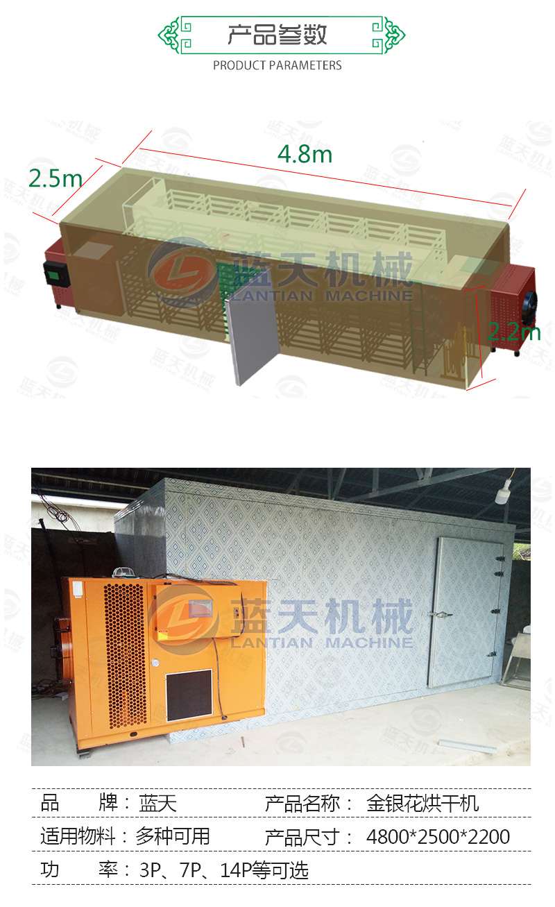 【藍天金銀花烘干機設備廠家給出金銀花烘干中需注意事項:】