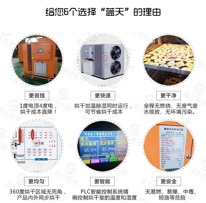 無花果鮮果含水以游離水、膠體水及化合水狀態存在,含水率達75-80%,含糖高,如果自然曬干時太陽光強度不夠,很難把無花是干透,使用空氣能無花果烘干機在于溫度、濕度、風速、風量可控。視塊狀大小一般初期1小時無花果烘干設備設置溫度宜在70-85℃的范圍,在短期內使無花果水分大量的蒸發,這4小時的排濕控制在50%,二段8小時的時間,溫度以60-70℃的范圍為基準,稍縮短排濕時間,濕度控制為30%,三段5小時的時間,溫度降低50-60℃,濕度繼續降低至10%;整個過程約18小時,無花果含水率降到15%以內。如為整顆烘干,需要的時間更長一些,先將果子均勻的鋪放在架子車上,推入烘干房干燥25-30小時后,再推出烘房外陰涼的地方放置24小時,再推入烘房內進行第二次的烘干。無花果烘干機24小時的烘干量視機型規格決定,少的以600-800斤一個批次,多的2000斤一個批次,10000斤甚至更大產能則考慮對吹及組合方式即可。這里提到產量,朋友們就會知道無花果烘干機的機型是有不同型號的,那無花果烘干機價格就是因型號不同而異了,這個需要了解客戶您的具體需求。