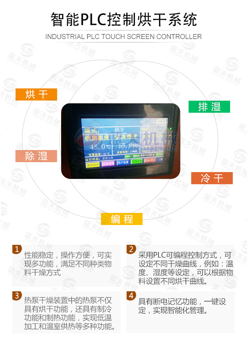 2、烘干時(shí)間短。高溫?zé)岜煤娓擅撍卟松a(chǎn)工藝,所需用的時(shí)間不會(huì)超過(guò)8h,一般從預(yù)熱到出產(chǎn)品4h即可完成。
